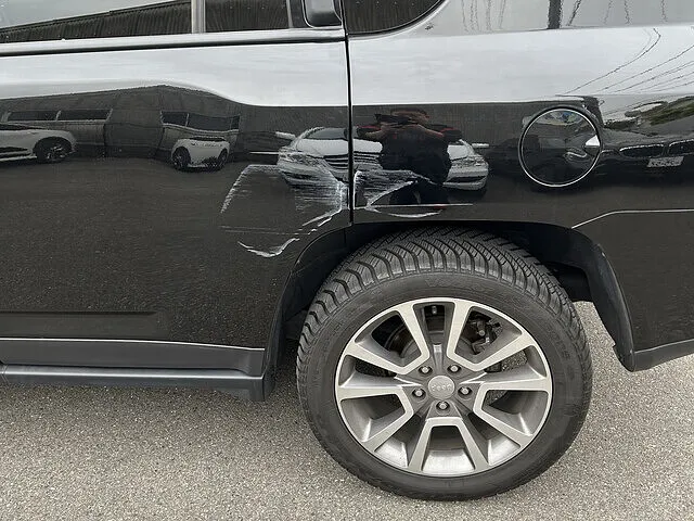 堺市にお住まいのお客様より、ジープ コンパスの左リアドア・クォーターパネルの擦り傷修理のご依頼をいただきました。
