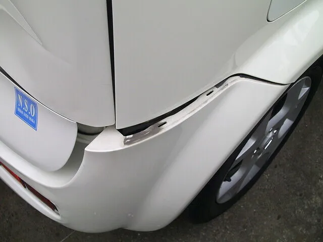 堺市 板金塗装|日産 キューブ リアバンパー・リアフェンダー キズ・へこみ修理