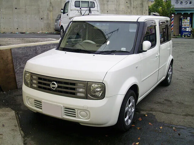 日産 キューブ フロントバンパー・フロントフェンダー・ヘッドライト キズ・ヘコミ修理 事故修理 中古パーツ交換│泉大津市 板金塗装