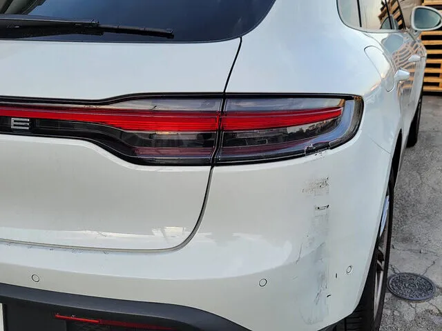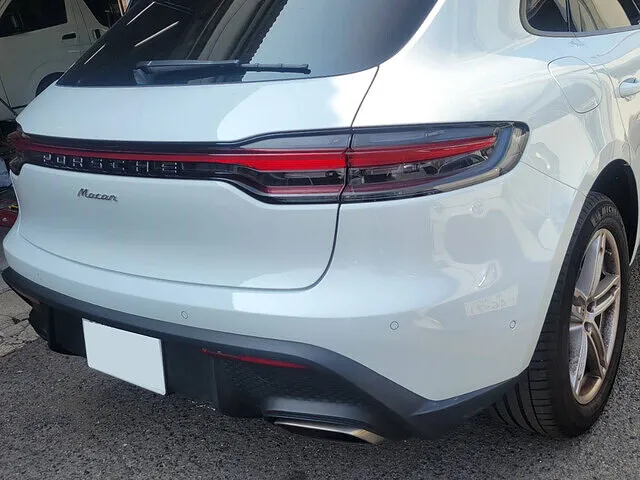 堺市のお客様より、ポルシェ・マカンのリアバンパー補修および右テールレンズ交換のご依頼をいただきました。
