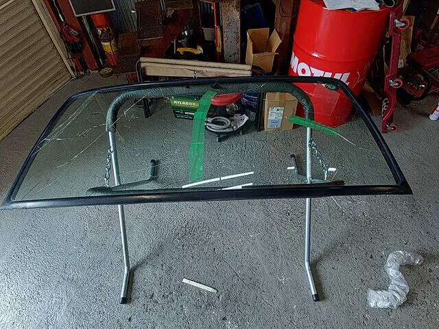 ガラス周囲のモールやワイパー、カバー類を取り外し、専用ワイヤーを使用して接着面を切り離します。