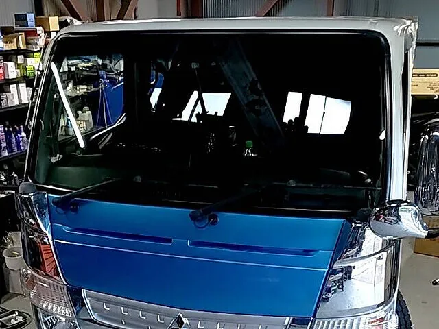 三菱 キャンターのフロントガラス交換が完了いたしました。