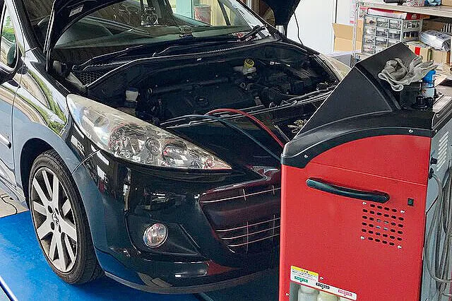 堺市のお客様よりプジョーの「エアコンが冷えない」とご相談がありました。